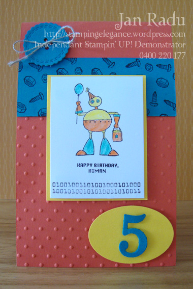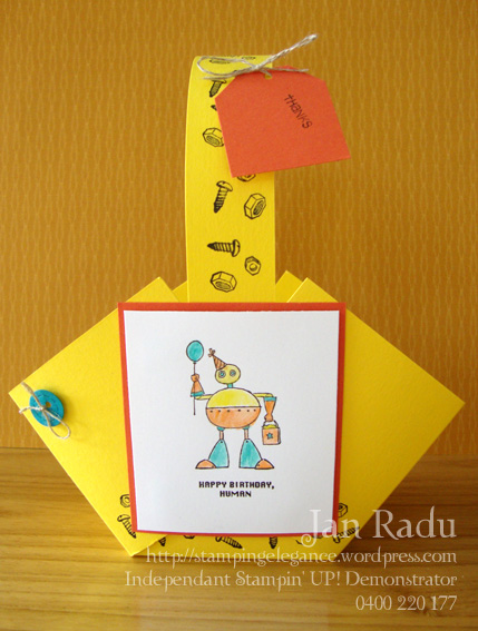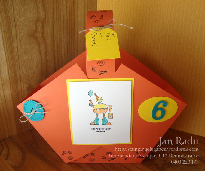 I have created a Birthday card and Gift Box, as well as a smaller Party favour Box – I plan on using this for Laurenz’s 6th birthdya coming up and my invitation will feature the Robot stamp too – just need to order the Please come invite stamp set so keep your eyes out for that post!
