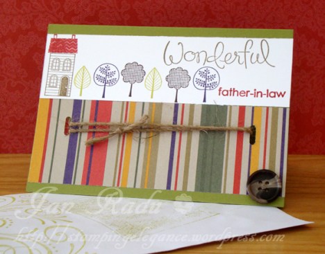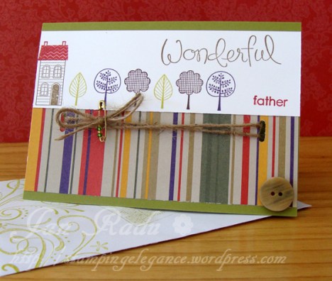 For My Dad ~ This button is vintage from my Mum’s much loved and used button box – the Tupperware is pale duck-egg blue – any guesses on how old that is ladies? I remember it as far back as my memory goes – it was always around as Mum was a big knitter and loved to make jumpers and cardigans for us kids – Aran Jumpers abound (yes we are Scottish!) The little safety pin with beads is something I used to make a lot when I was a little girl – I found two of them at the bottom of Mum’s button box and had to give one back to Dad on his card 🙂