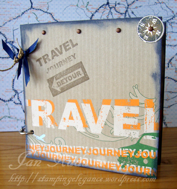 I am back with a project I created for my Uncle Bobby using the new Sentimental Journey Stamp Set and Travel Journal DSP. This was as simple as quartering the cardboard backing from my packs of DSP and punching holes in them, decorating and fixing with two metal rings to create a binder.