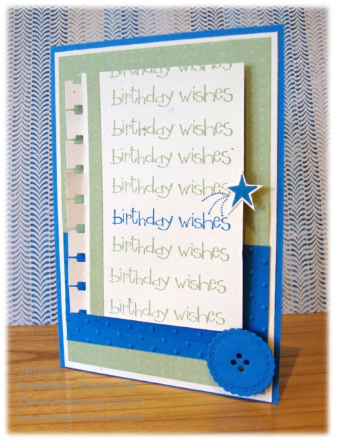 Ledge Point is so close to Ellenbrook (less than 1.5 hrs) so we were home by 11:30, returning to a little brown box with more Stampin Up! goodies which of course I couldn’t resist having a play with this afternoon. Firstly I used the FREE sale-a-bration So Happy For You set to create a couple of boy birthday cards for Laurenz’s friends this week. My idea for these came largely from a card featured on www.sarahklass.com this week: