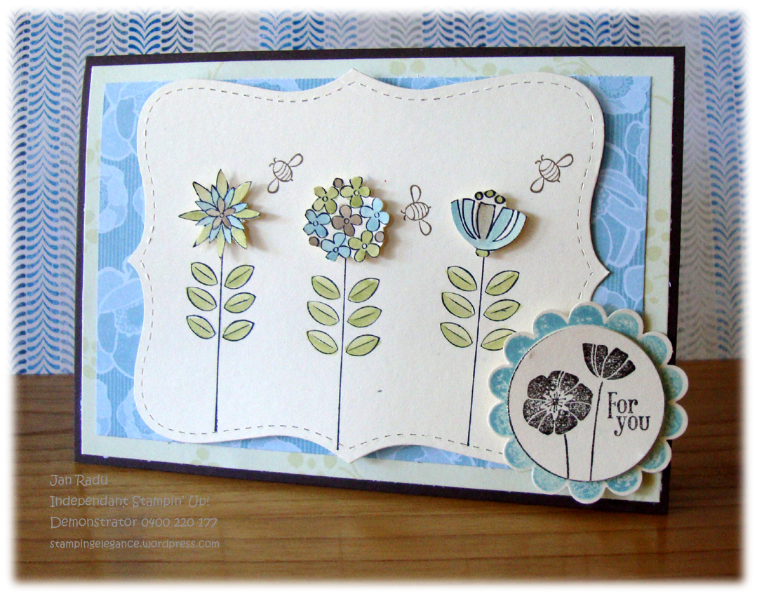 I have been quite taken with one of the sample cards in the SU sale-a-bration and created this card which is based loosely on that design: