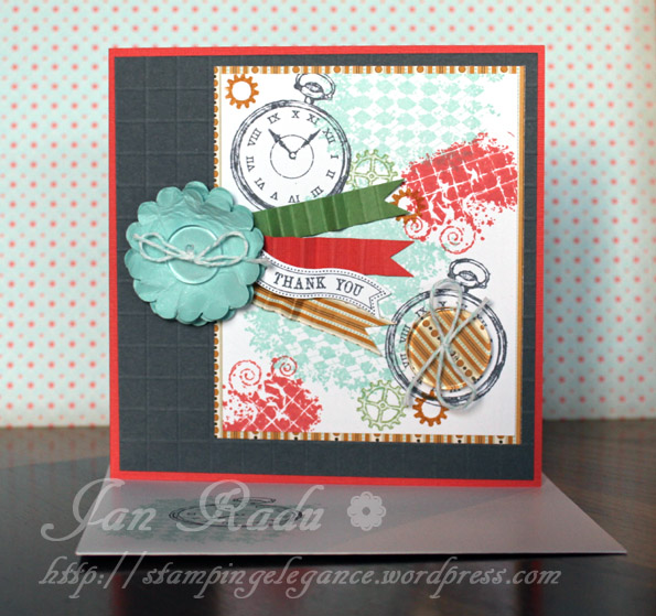 At the Heartfelt Stampin Event recently, the make and take was a wonderful set of kits using the Clockworks stampset in colours that I would never have imagined teaming with it, and I thought they would make a nice gift to give to this wonderful teacher on her last day tomorrow. Here is the Notepad: