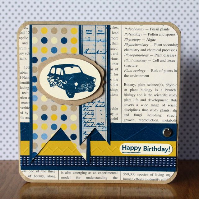 Sometimes it can be a real challenge designing a birthday card for that Man (or Boy) in our lives – nothing too young, too old, too girly and the list goes on and on! I really like the retro feel of this card – I think it is totally ageless with it’s cool colour scheme and vintage car image. The stamp set I’ve used is retired but the DSP is a combo of Newsprint (which I love!!!) and the very new Print Poetry DSP pad available in the Seasonal Catty. The Birthday sentiment is from On Your Birthday