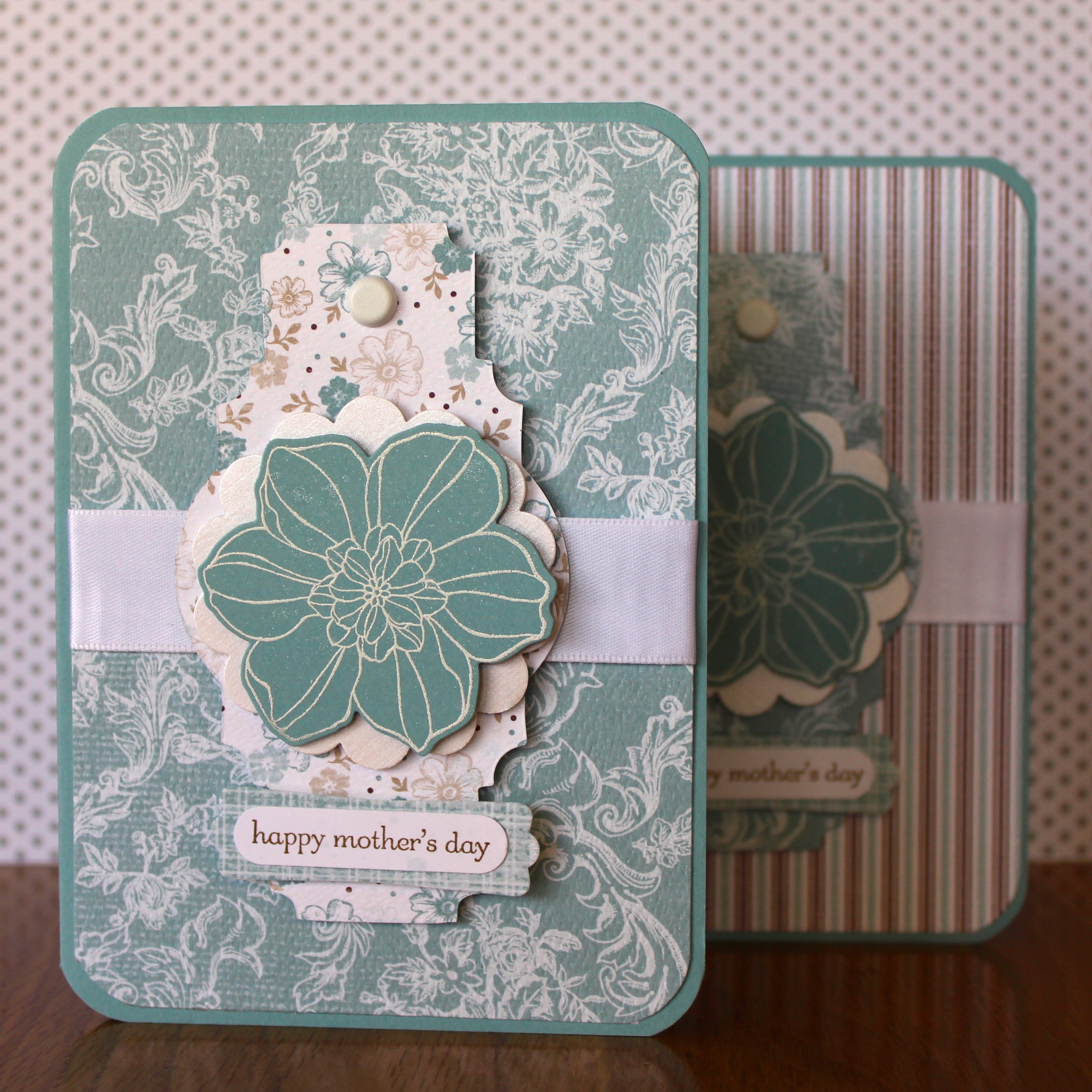 I whipped these cards up yesterday for my dear Mum and Mother – in – Law using a very retired and sought after Parisian Breeze Cardstock weight DSP…that I love! So I only bring it out for special occasions 😉