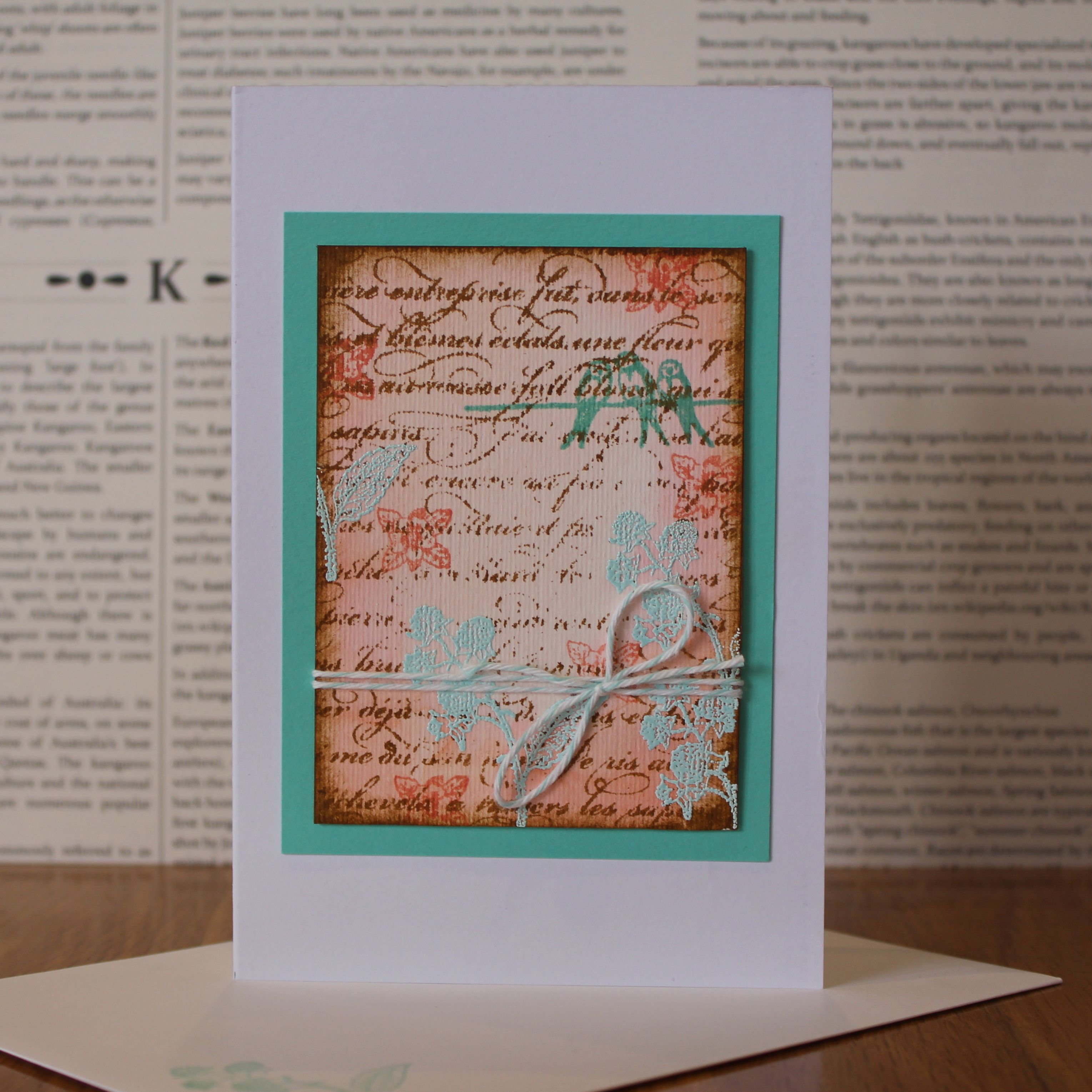 The stamp set with these gorgeous birds is called Clearly For You. Isn’t the Coastal Cabana Card stock mat just the most gorgeous colour? I love in particular how the En Francais script has bled.