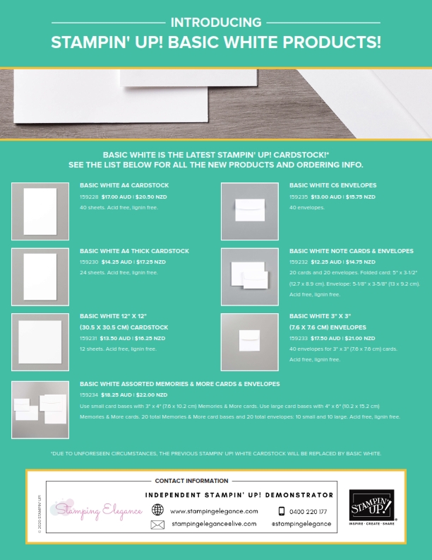 Have you heard that due to supply issues, Stampin’ Up! have replaced their Whisper White products with the new Basic White? Once current Whisper White stocks are depleted, any orders will automatically switch to the new Basic White. The great news? Basic White still offers the same amazing stamping experience, with an even brighter white appearance. Win Win!