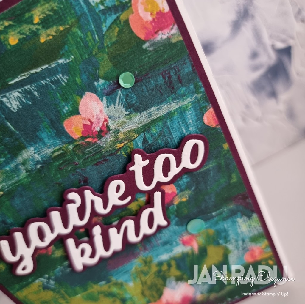 These dies are so striking, they don’t need much more than a gorgeous Designer Series Paper (DSP), and a few embellishments to finish off a card beautifully.